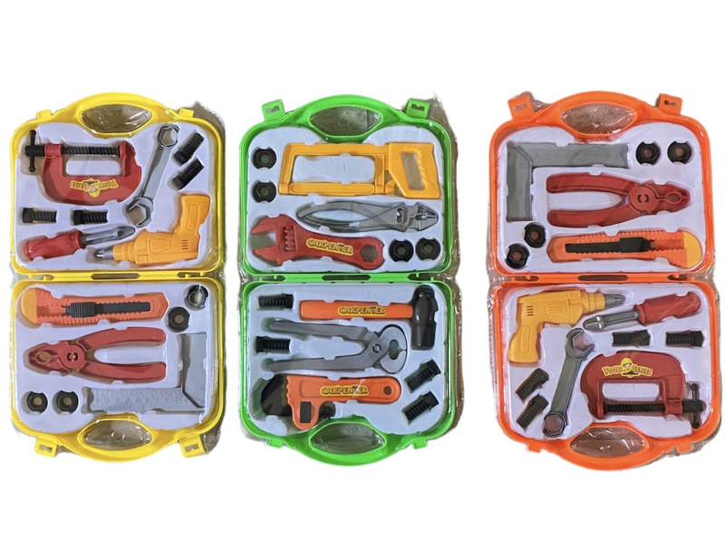 Набор "Строитель". В комплекте: 15 предметов в чемоданчике. В ассортименте 3 цвета. Размер игрушки 18*21*5 см