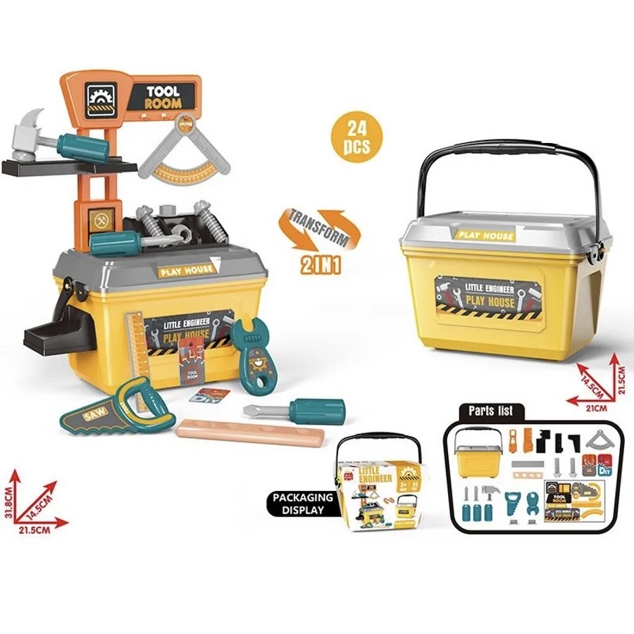 Чемоданчик со строительными инструментами. В комплекте 24 предмета ( пила, отвертка, насадки, шурупы, гаечный ключ и др.)