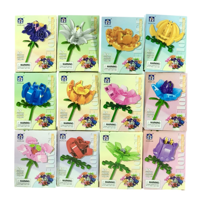 Мини-конструкторы с тематикой "Цветы". 12 видов. ОТГРУЗКА ШОУБОКСАМИ ПО 12 ШТУК.