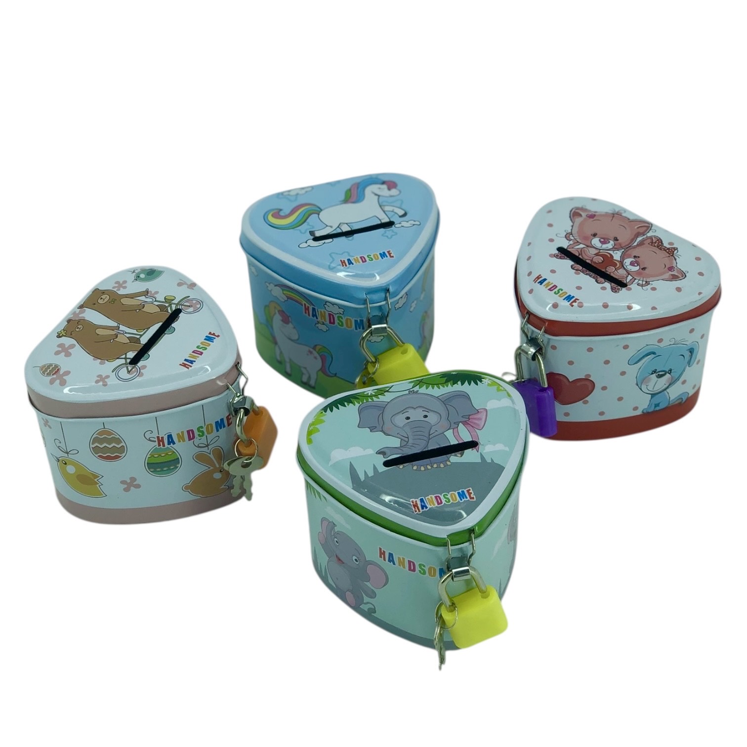 Жестяная копилка с замочком в форме сердечка. Цвета в ассортименте.
