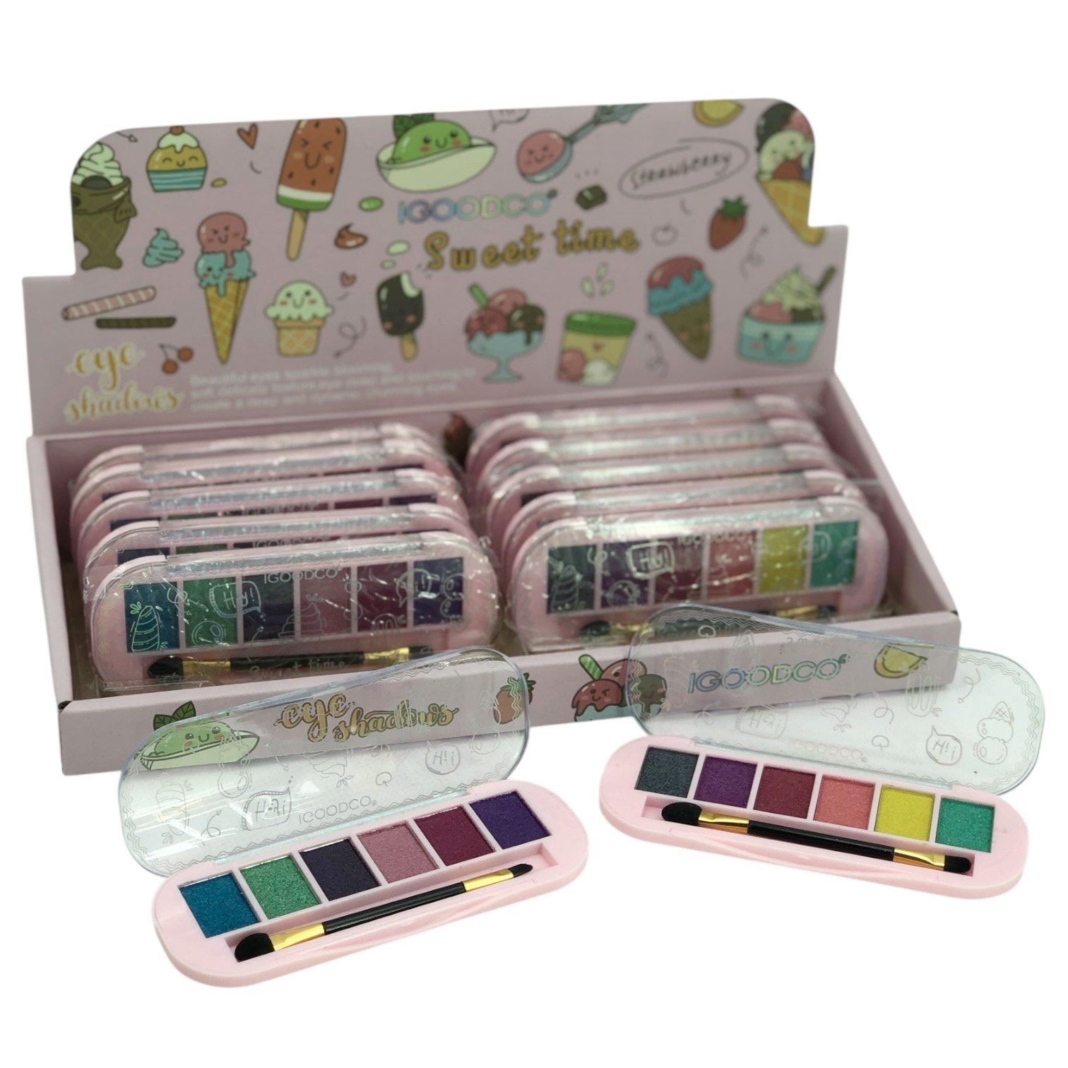 Палетка теней на 6 цветов. Кисточка в комплекте. 2 ЦВЕТА В АССОРТИМЕНТЕ. ОТГРУЗКА ШОУБОКСАМИ ПО 12 ШТУК.