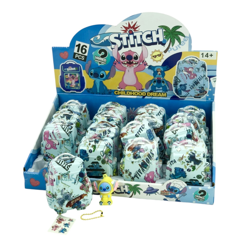 Силиконовый брелок "Стич" в упаковке в виде рюкзачка. В комплекте: фигурка, цепочка, наклейки. ОТГРУЗКА ШОУБОКСАМИ ПО 16 ШТУК.
