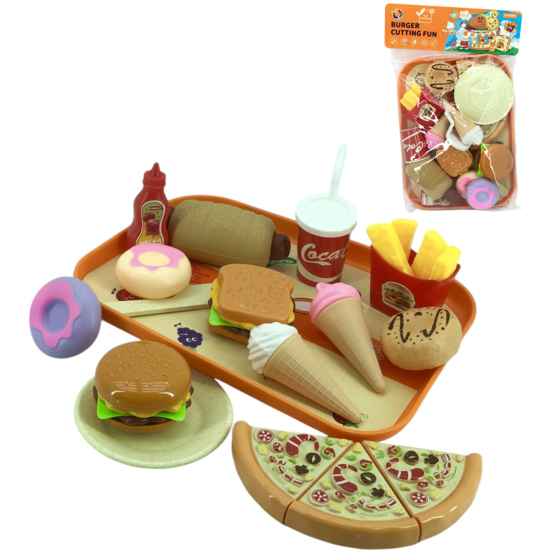 Игровой набор "Продукты. Фастфуд". В комплекте: нож, доска, продукты питания, поднос.