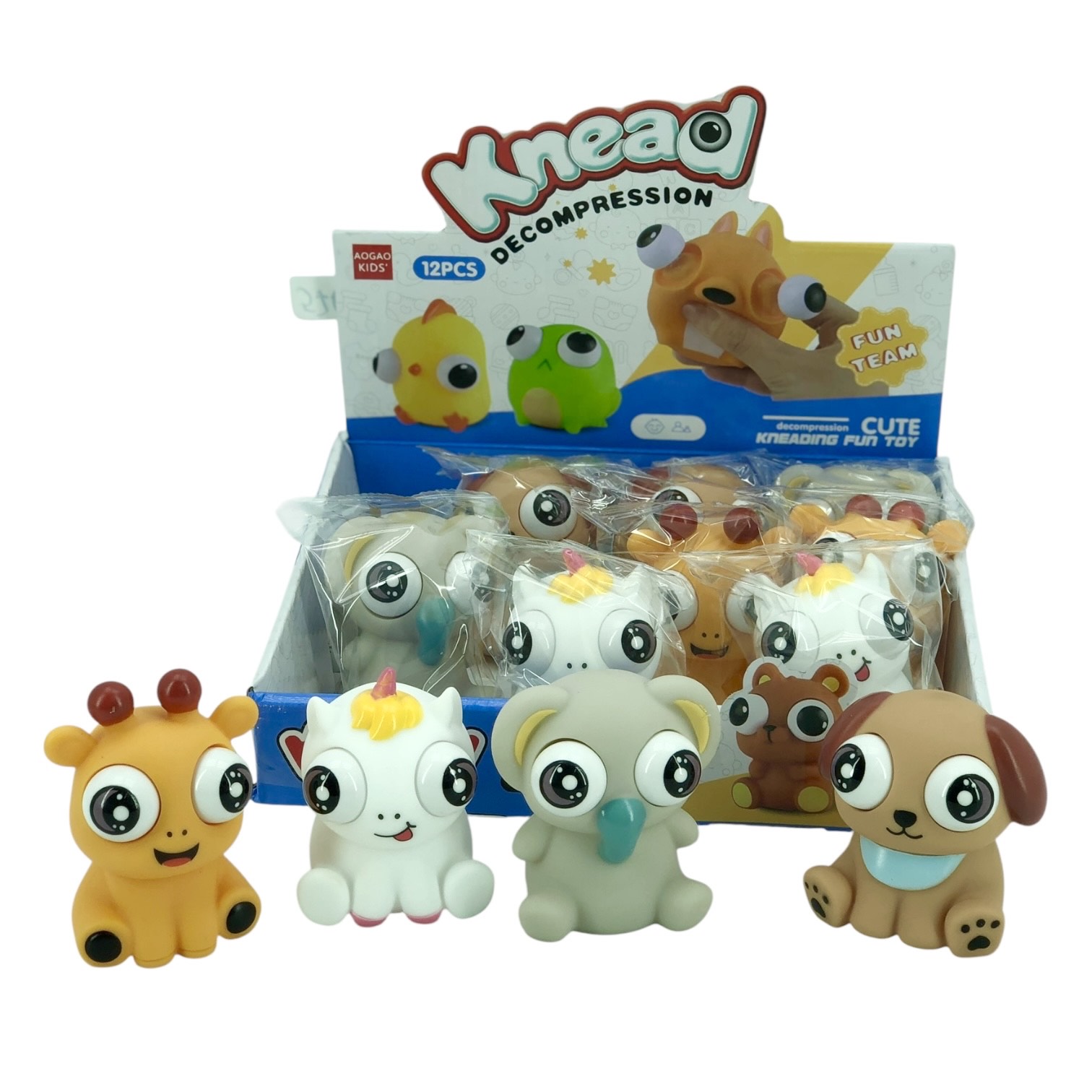 Игрушка-антистресс-нажимарик. При нажатии на животного - выпучивает глаза. 4 вида в ассортименте. ОТГРУЗКА ШОУБОКСАМИ ПО 12 ШТУК.
