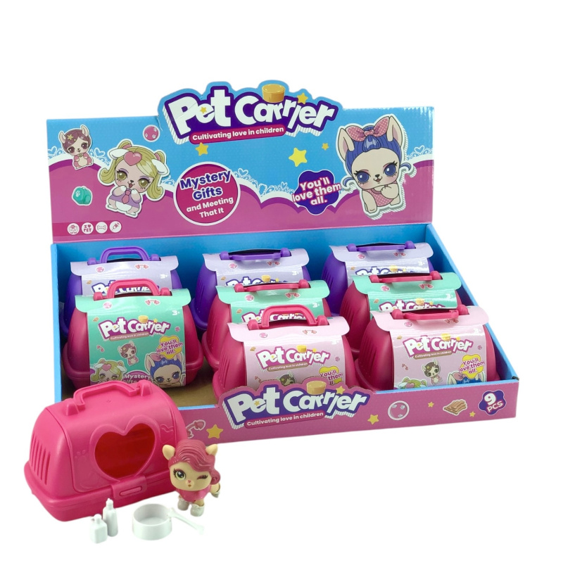 Переноска-сумочка для животных. В комплекте: животное, мисочка, 2 муляжа шампуня, косточка, одежда и 4 ботинка.