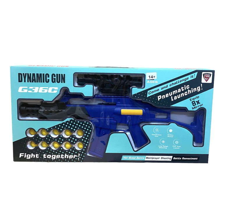Игрушечное оружие "Автомат". В комплекте 10 мягких пуль-шариков. Размер упаковки:58*28*5,5 см. Оружие: 54*24 см