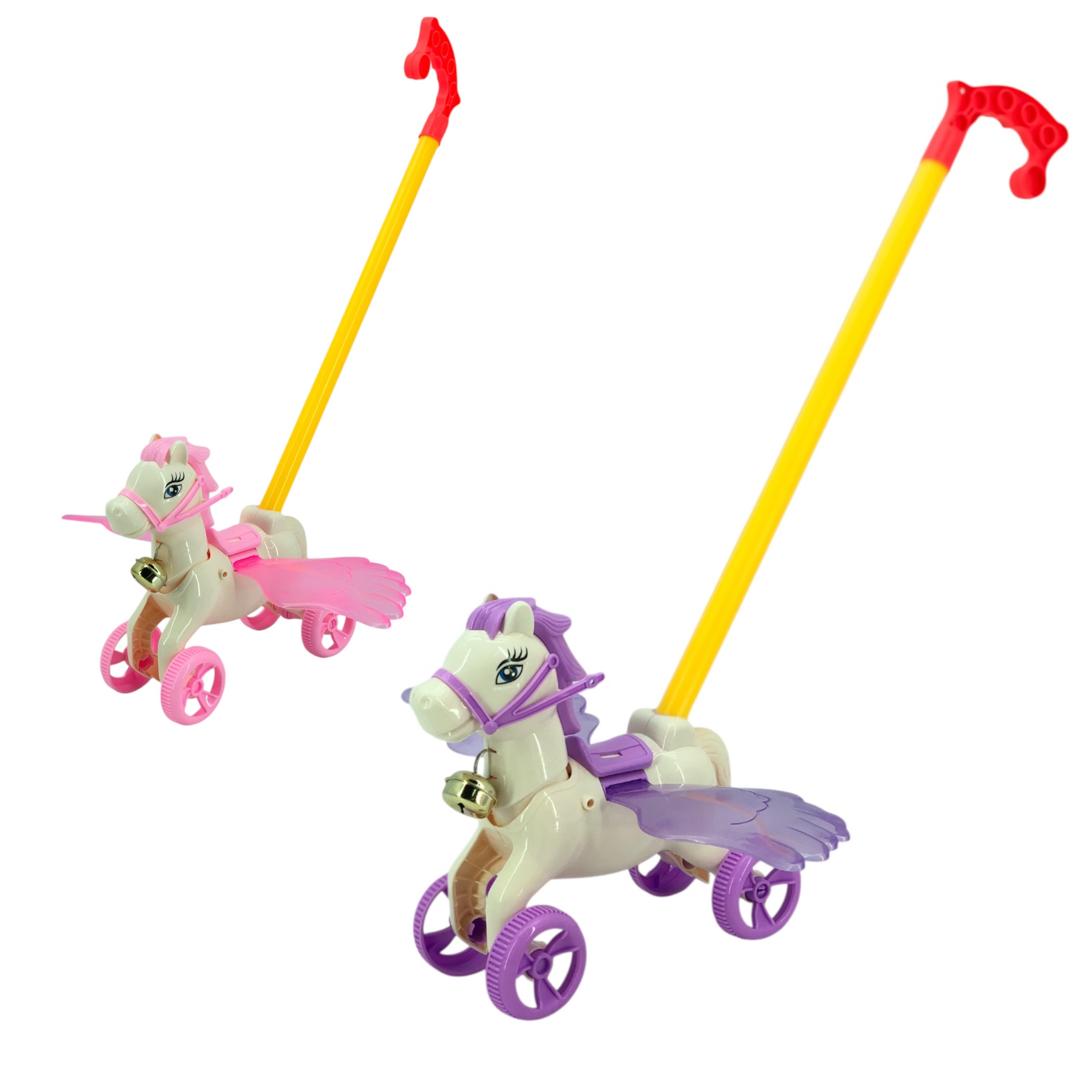 Игрушка-каталка в виде Пони. При движении машет крылышками, издает звук звоночка.