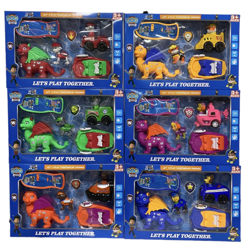 Игровой набор "Щенячий патруль". В комплекте: 3 фигурки животных, значок, транспорт, скейт. В ассортименте 6 видов.