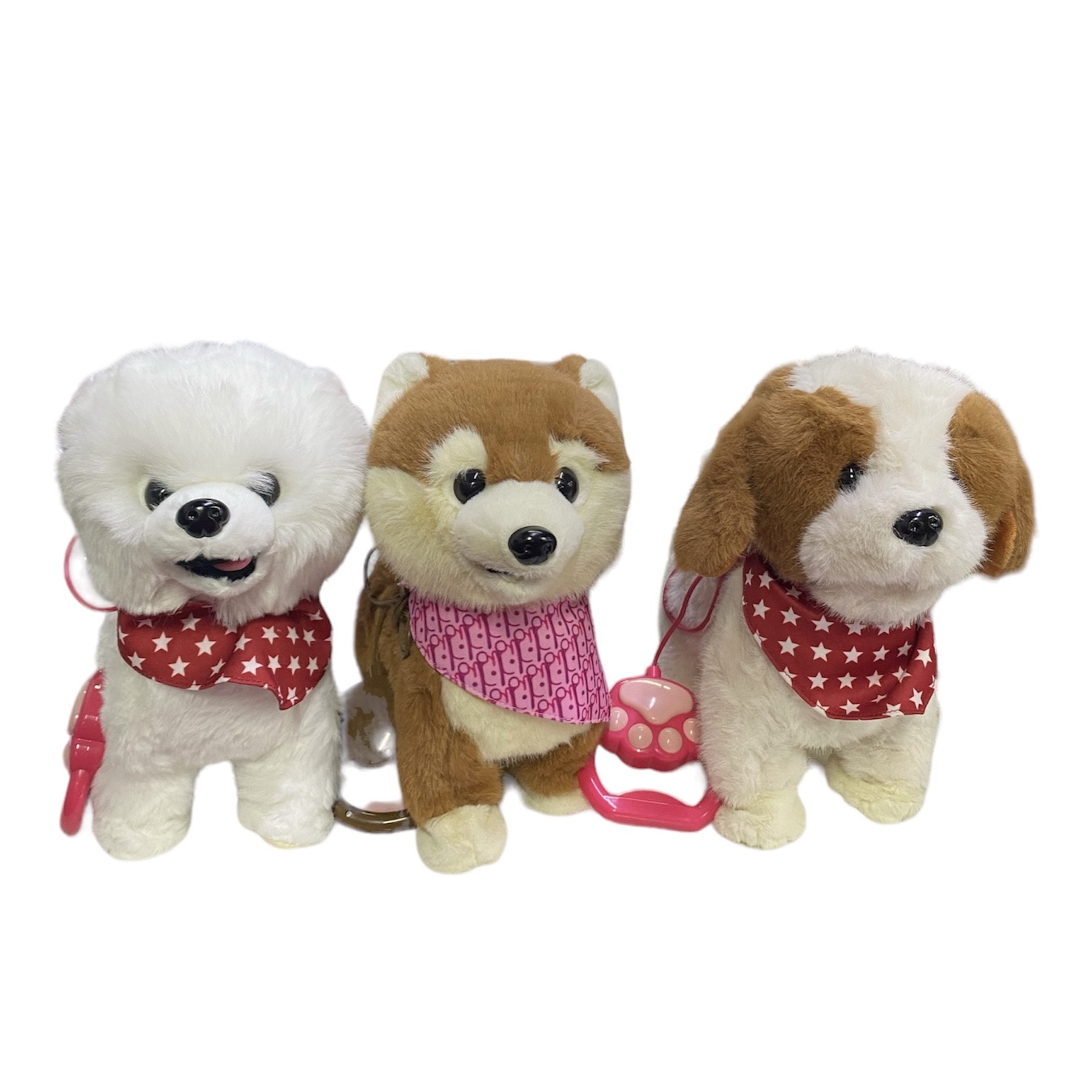 Собачка на поводке. Поёт песенку на английском, ходит, виляет хвостом, шевелит головой.