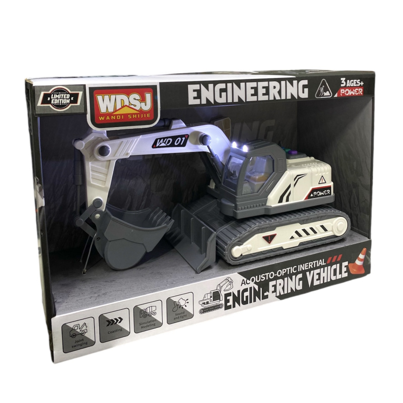 Экскаватор со световыми и звуковыми эффектами. воспроизводит звук мотора, песню и рассказ на англ. языке.