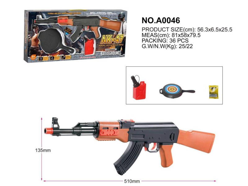 Игрушечное оружие. Комплектность: оружие, мишени, маленькие гелиевые шарики-патроны. Размер игрушки 51*13 см