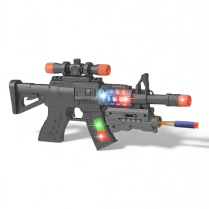 Автомат со световыми и звуковыми эффектами. В комплекте 10 мягких пуль.