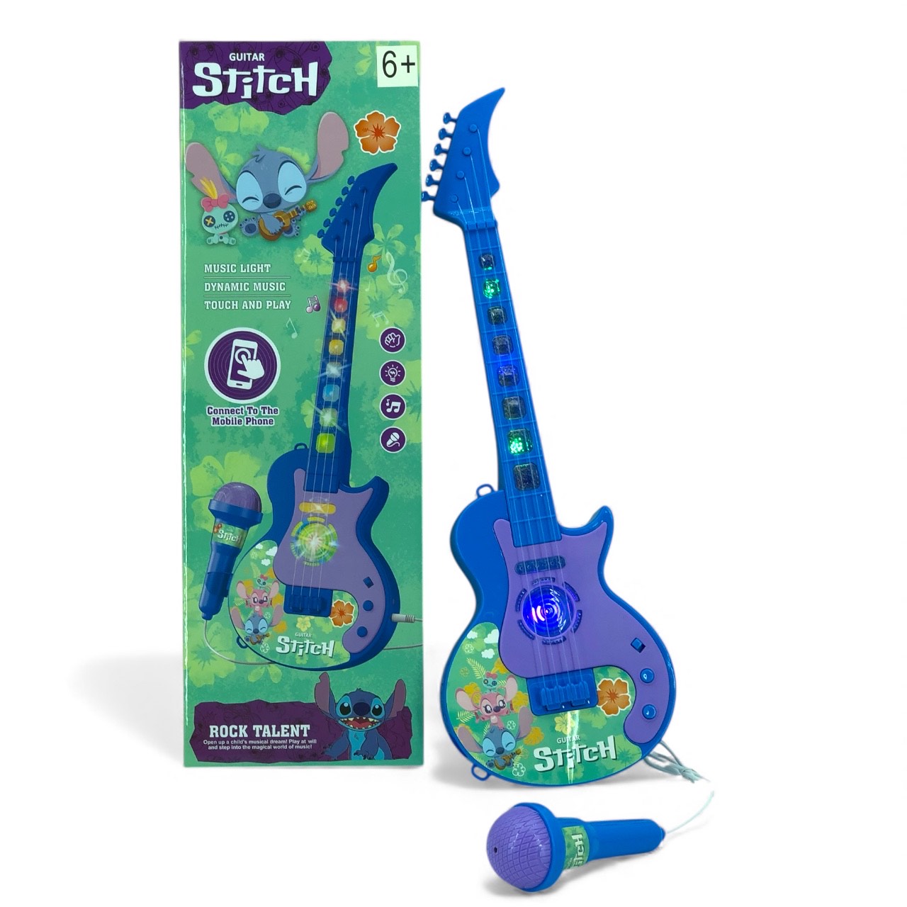 Музыкальный инструмент "Гитара". Воспроизводит 2 мелодии, можно подключить микрофон или наушники. (Работает от батареек)
