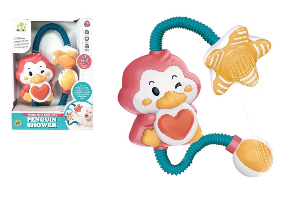 Игрушка для ванной лейка для ванны в форме пингвинёнка. Игрушка с гибкой шеей и возможностью направлять струю воды в нужном направлении. Легко крепится на поверхность ванны с помощью присосок.
