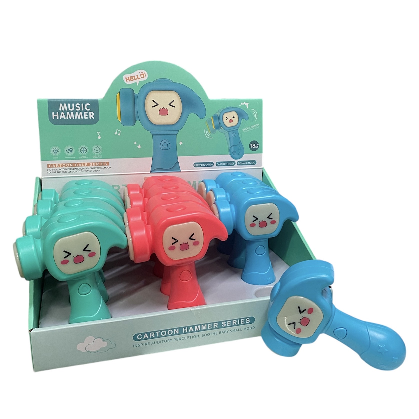 Музыкальная игрушка "Молоточек". Воспроизводит звуки на каждое касание молоточка к любому предмету, воспроизводит звуки и мелодии при нажатии на кнопочку. Отгрузка шоубоксами по 12шт!