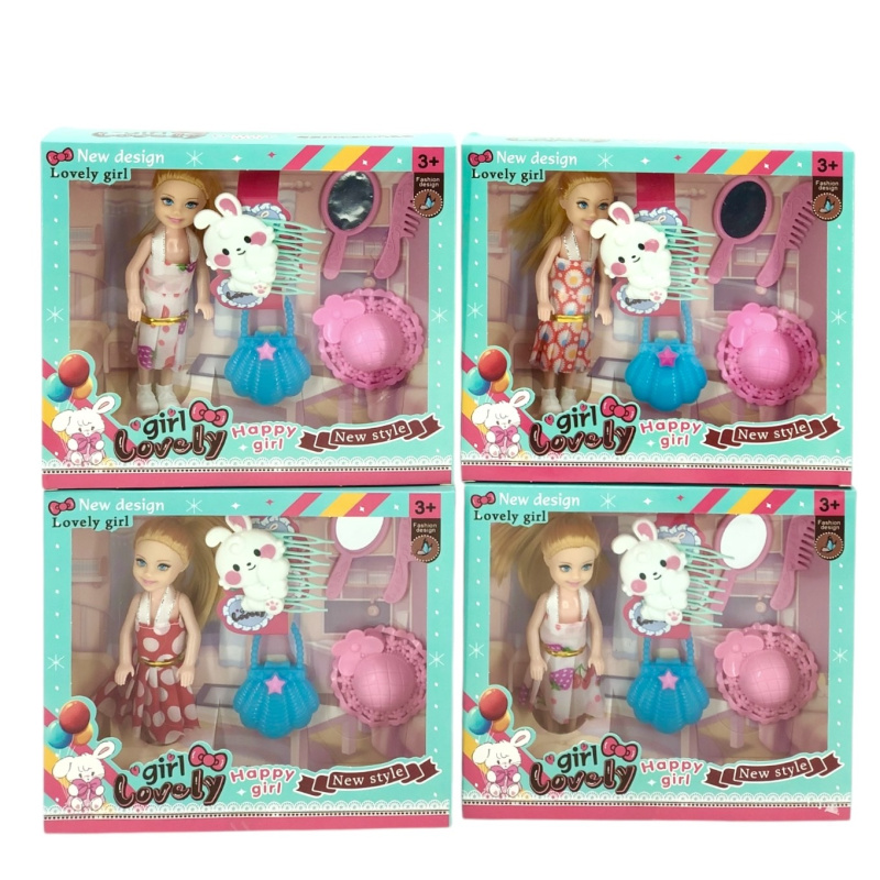 Кукла с аксессуарами. В комплекте: гребешок, расчёска, шляпка, сумочка, зеркало. 4 вида в ассортименте.