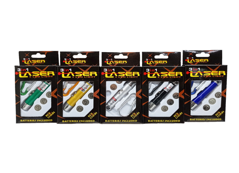 Игрушка "Лазер 3в1". Можно использовать как лазер, светодиодную лампу, брелок для ключей. 5 цветов в ассортименте.