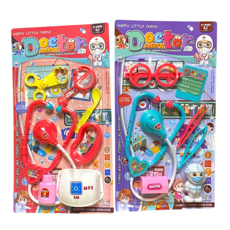 Игровой набор "Доктор". В комплекте: стетоскоп, очки, 2 пинцета, фигурка, мини- чемоданчик. 2 цвета в ассортименте.