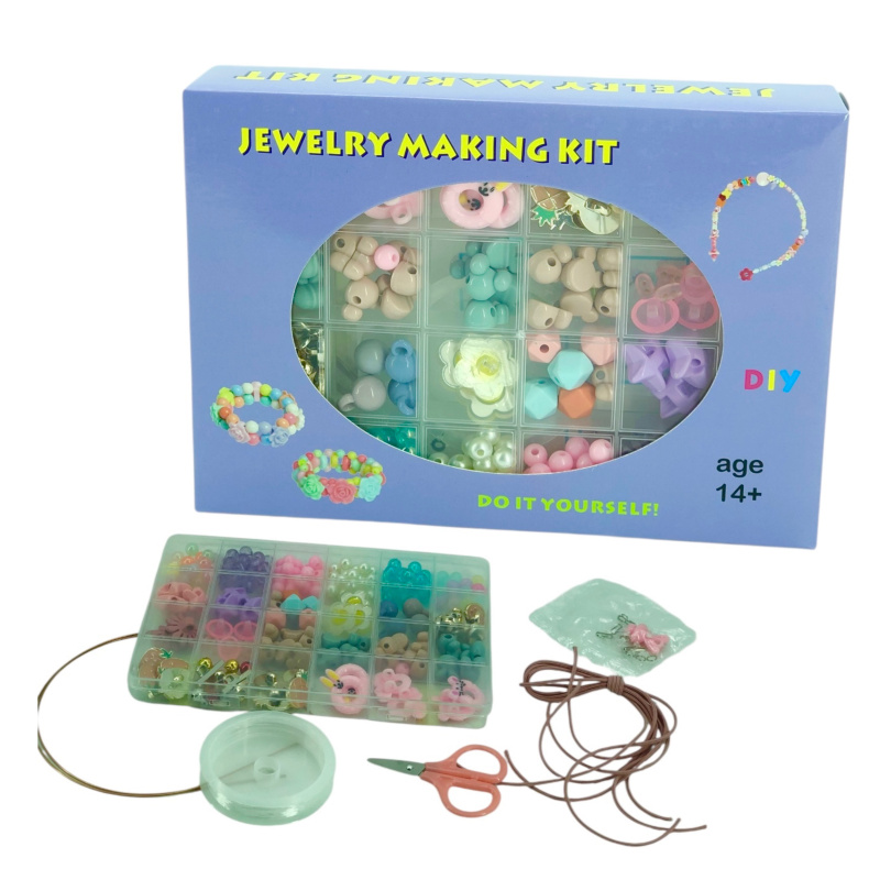 Набор бусин для плетения. В комплекте: леска, веревочка, 2 металлические основы, бусины, фигурки для плетения.