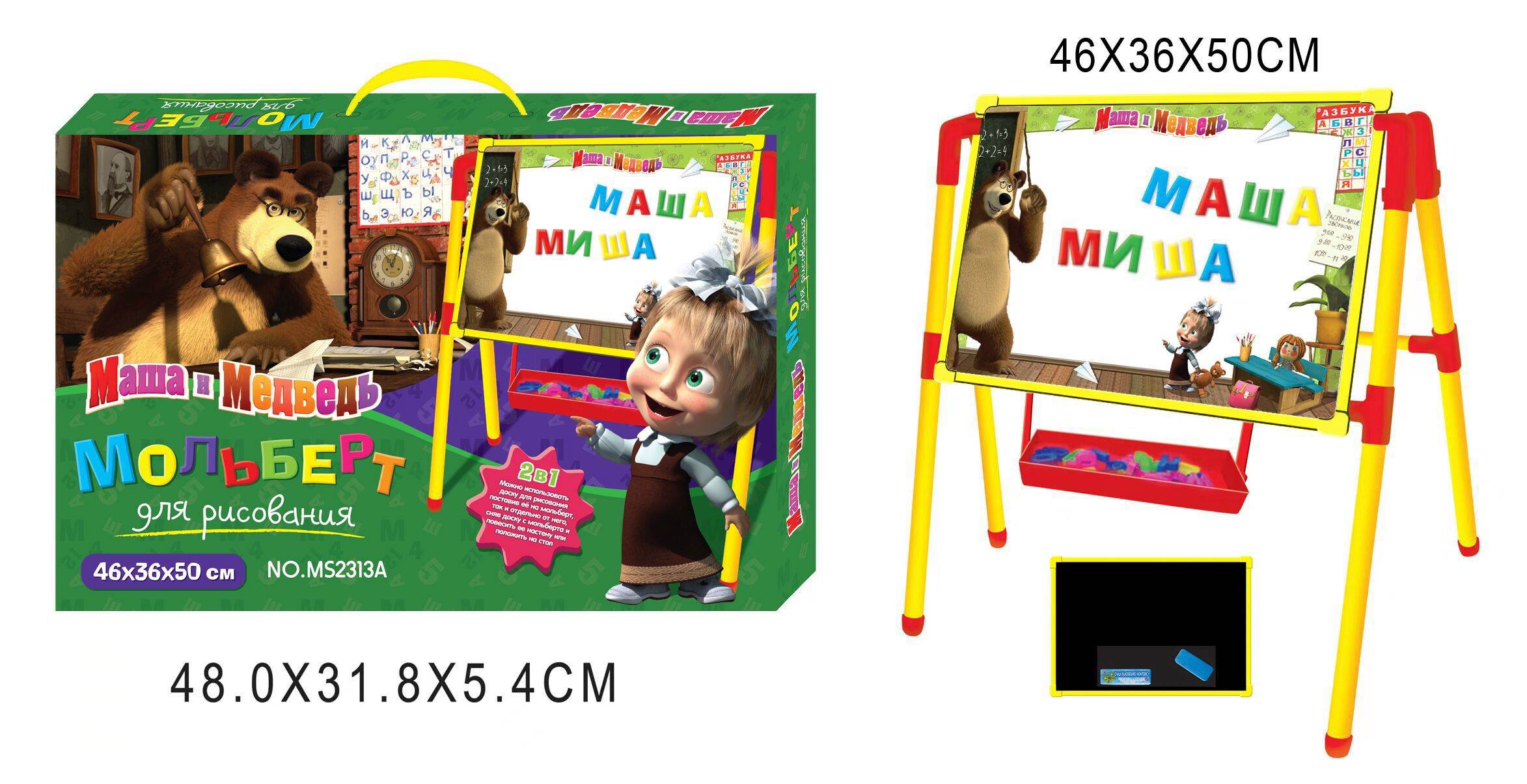 Мольберт для рисования двухсторонний. В комплекте: доска, маркер, магнитные буквы, мелки, губка.
