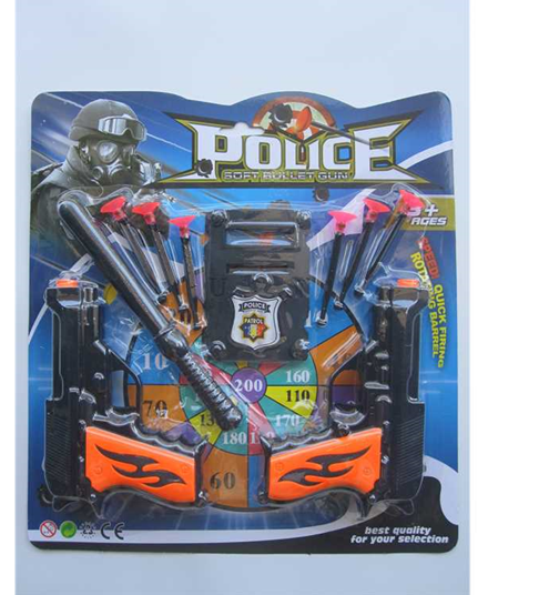 Набор "Полицейский". В комплекте: 2 пистолета, дубинка, 6 пуль на присосках, щит.
