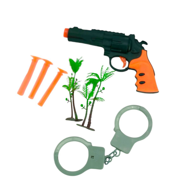 Набор пистолет, 3 пули и наручники. В комплекте растения.