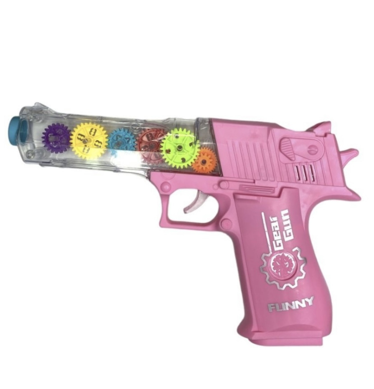 Игрушка "Пистолет прозрачный с движущимися шестеренками" со световыми и звуковыми эффектами.
