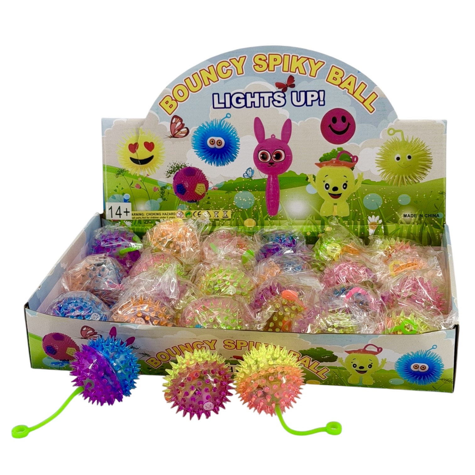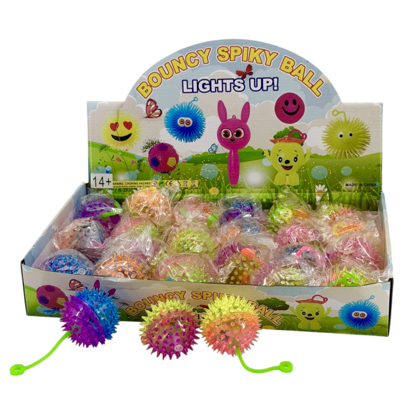 Мячик- попрыгунчик с шипами. При нажатии издаёт звук. Со световыми эффектами. ОТГРУЗКА ШОУБОКСАМИ ПО 24 ШТУКИ.