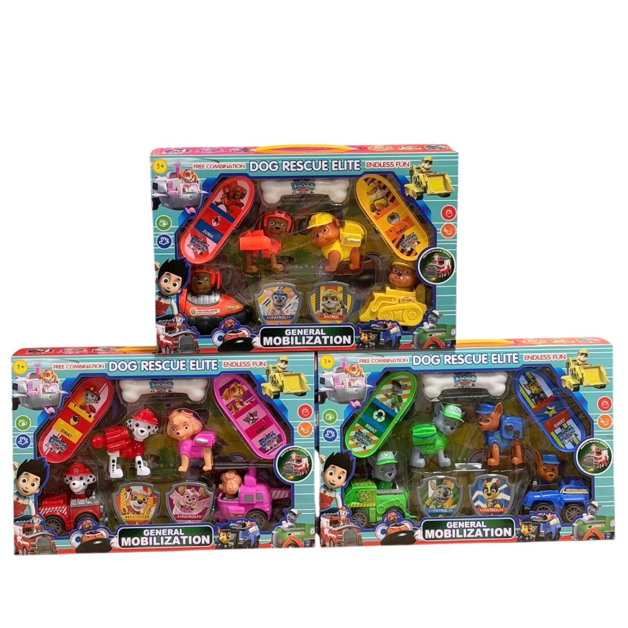 Набор "Щенячий патруль". В комплекте: 2 щенка + 2 щенка на машинках, 2 значка, 2 скейта, кость