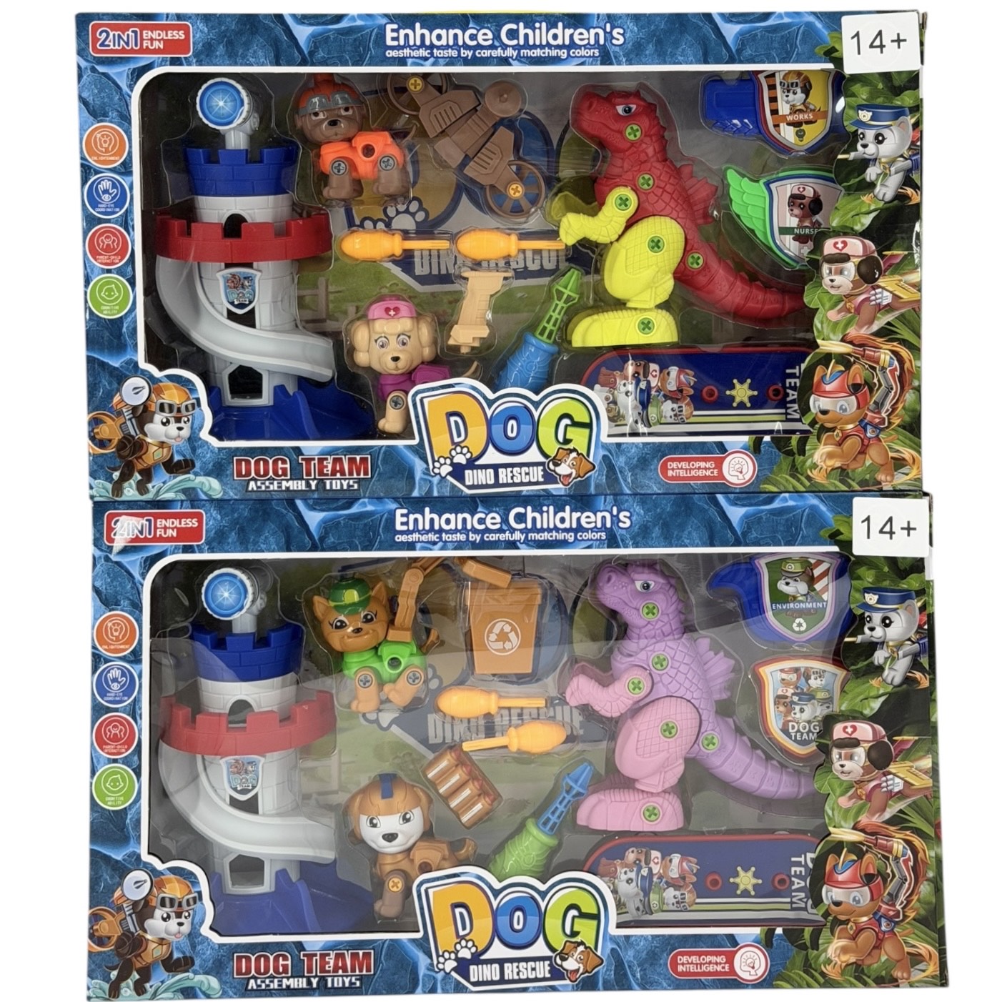 Игровой набор "Щенячий патруль" с элементами конструктора с отверткой. В комплекте: 2 щенка, станция, 2 значка, скейт, 3 отвертки, динозавр. 2 вида в ассортименте.