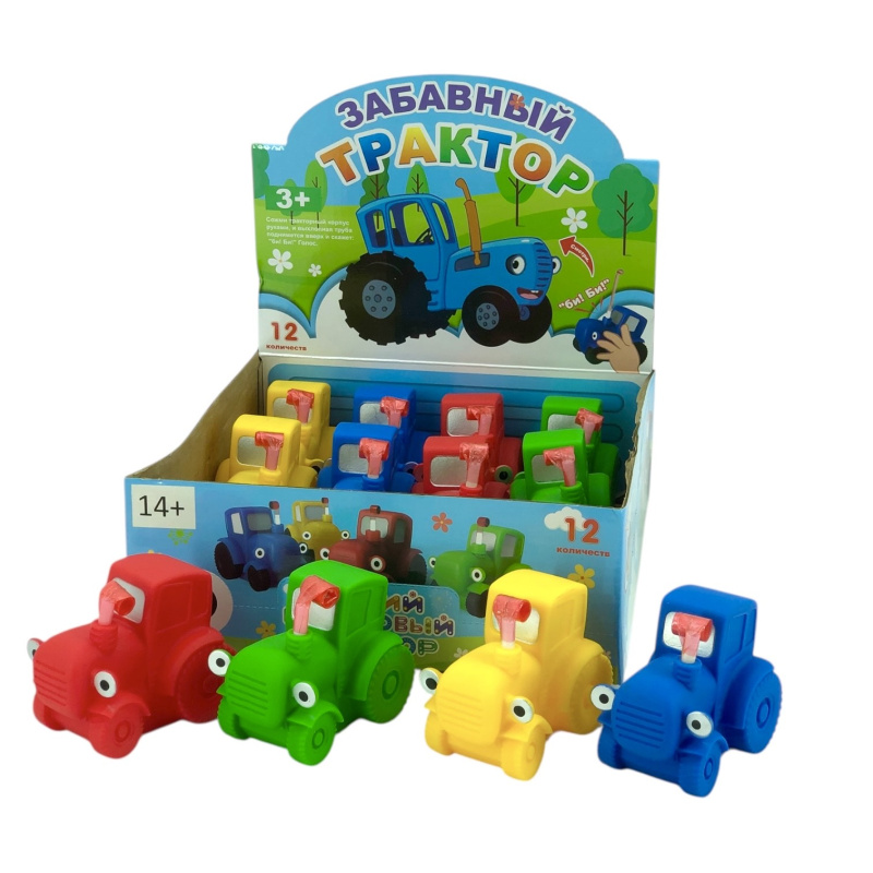 Игрушка-пищалка в стиле "Синий трактор". 4 цвета в ассортименте. ОТГРУЗКА ШОУБОКСАМИ ПО 12 ШТУК.