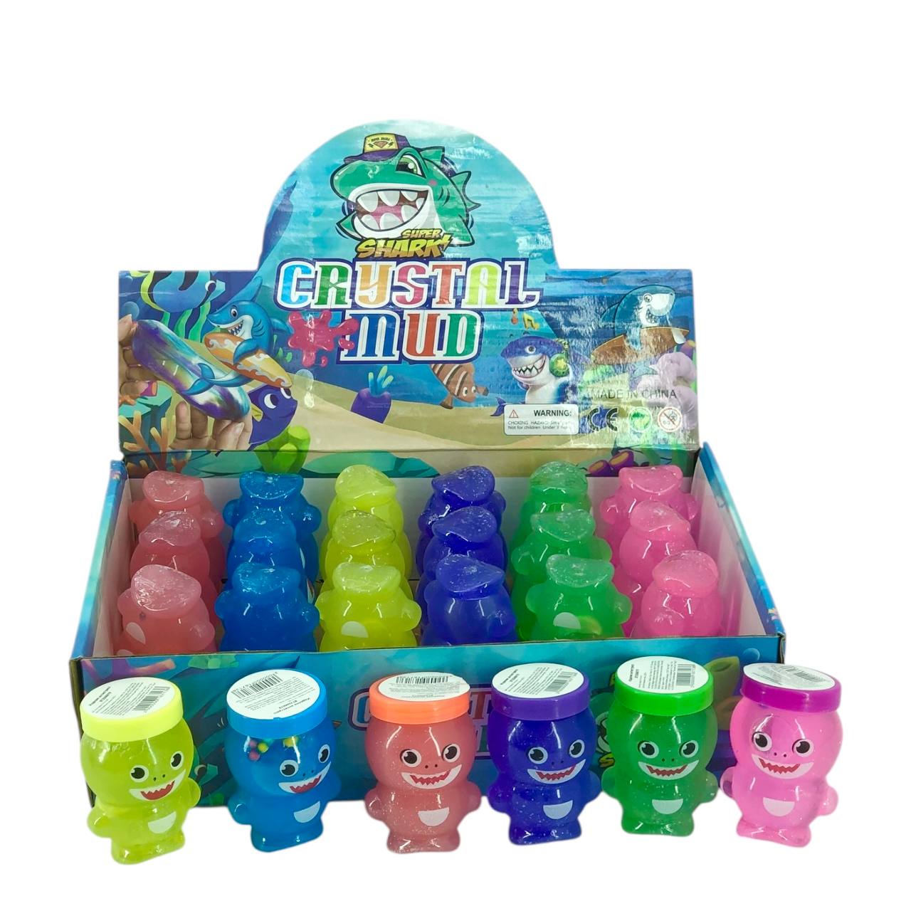 Слайм в мини-баночке в виде акуленка. 6 цветов в ассортименте. ОТГРУЗКА ШОУБОКСАМИ ПО 24 ШТУКИ.