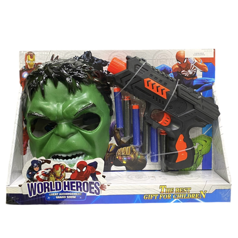 Набор супергероя Халк. В наборе: маска, пистолет, 6 мягких пуль.